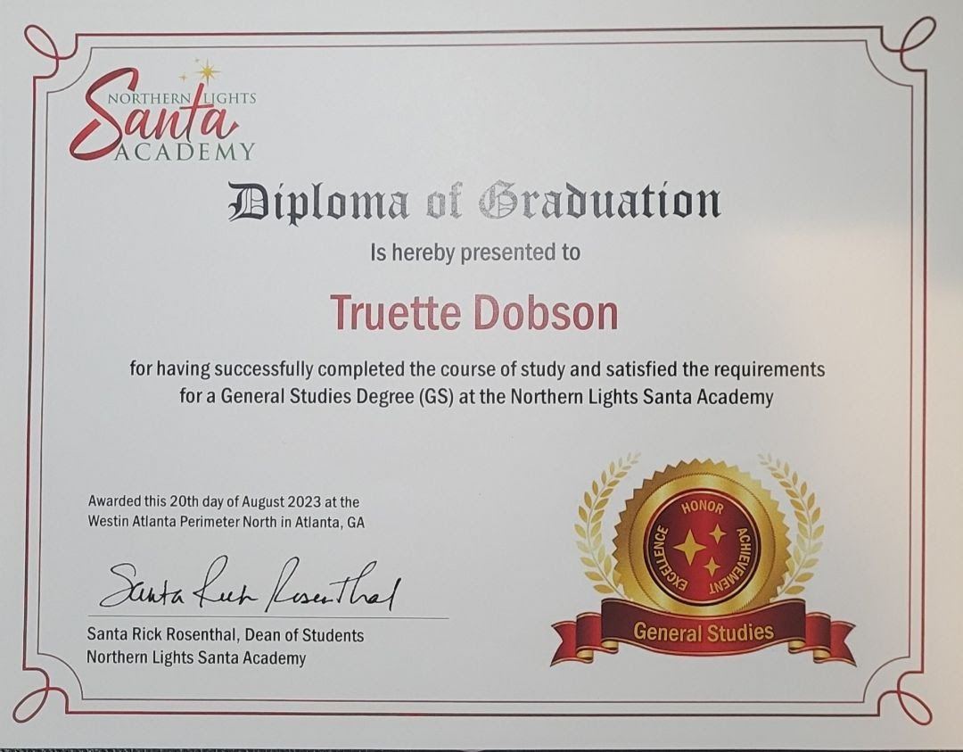 If you’re searching for a touch of enchantment for your upcoming event, look no further than Golden Corner Santa and Mrs. Claus! With a wealth of experience and certified professionals, Santa Truette and Mrs. Claus Nancy Dobson are poised to make your holiday celebrations truly unforgettable. Truette, a retired Police Officer, and Nancy, a retired Pharmacist, have graduated from the prestigious Northern Lights Professional Santa School in Atlanta, GA, the C.W. Howard Santa School in Michigan (the oldest Santa school globally), and, in 2024, the International Santa Celebration in Memphis, TN, and School4Santas in Orlando, FL. Truette is also a proud member of the esteemed International Brotherhood of Real Bearded Santas.